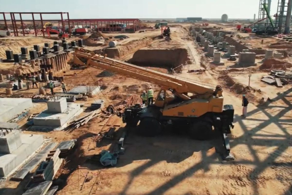 Идут бетонные работы по фундаментам, монтаж металлоконструкций, установка технологического оборудования, сборка РВС-5000, РВС-1000 и сферических резервуаров 600 м³.