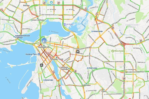 Тогда затруднения на дорогах наблюдались на выезде на Мамадышский тракт и на улице Вишневского. К этому присоединилась пробка двухкилометровая пробка на мосту около Казань Арены. Тажке пробка на 2,2 километра растянулась с улицы Технической до светофора на перекрестке Павлюхина-Назарбаева. В отличие от других дорожных ситуаций, эта не связана с ДТП. На участке, где растянулась пробка, идут ремонтные работы.
