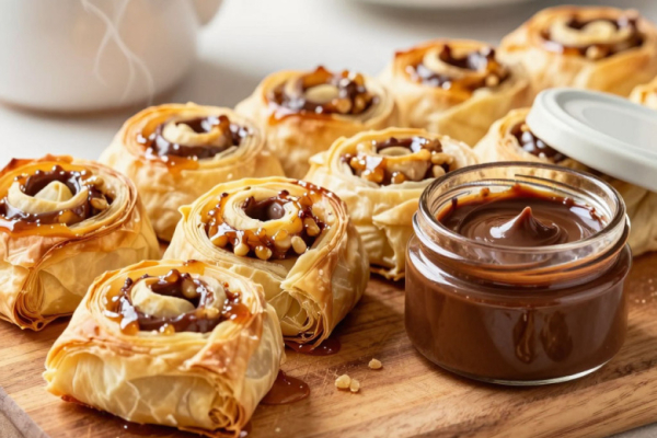 Получается обалденная вкуснятина: слоистое, хрустящее тесто, пропитанное сладкой «Нутеллой», с аппетитными завитками, которые так и просятся в рот. Аромат шоколада и ванили наполняет кухню, а домашние сбегаются на запах, не дожидаясь, пока десерт остынет.