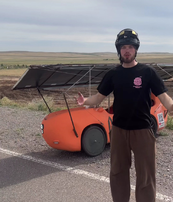 За путешествием товарищей следят сотни подписчиков по всему свету. Кстати, сопровождают ребят в пути их товарищи — на электромопеде и фургончике "буханка". Все нужное в дороге в лёгкую конструкцию солнцемобиля не помещается.
