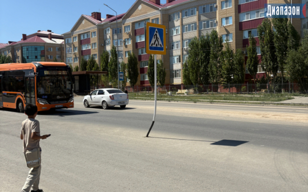— Почему знак пешеходного перехода в микрорайоне Алтын Орда торчит посреди дороги? — задается вопросом читатель. – Это соответствует нормам?