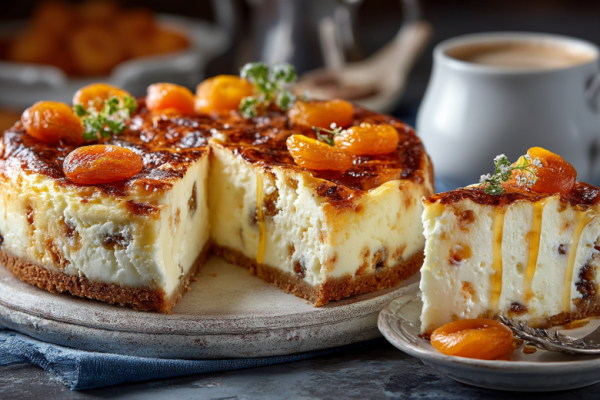 Рецепт: форму для запекания (лучше диаметром 18-20 см) смажьте маслом и присыпьте мукой или застелите пергаментом. В глубокой миске смешайте йогурт, яйца, сахар и крахмал до полной однородности. Масса должна получиться жидкой и гладкой. Вылейте смесь в форму. Сверху посыпьте сухофруктами — они немного утонут, но останутся на поверхности. Поставьте форму в разогретую до 170°C духовку и выпекайте 45-50 минут. Готовый чизкейк слегка подрумянится по краям, но серединка может дрожать — это нормально. Выключите духовку, приоткройте дверцу и дайте десерту полностью остыть внутри. Затем уберите в холодильник минимум на 3-4 часа, а лучше на ночь — только так чизкейк обретет идеальную плотность и нежность.