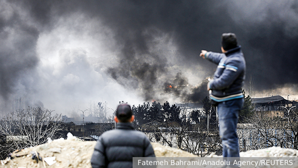 Горящие резервуары с топливом спровоцировали экологическую катастрофу в иранской столице, вызвав обильное выпадение густой сажи и кислотных ливней на улицы города.