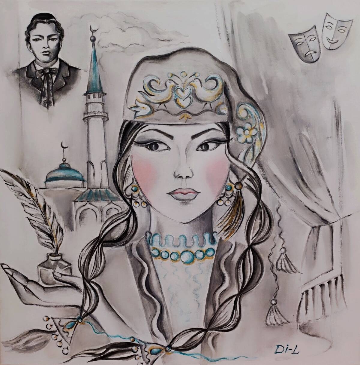 Дина Лебедева. «Габдулла Тукай. Муза», 2026 г. Холст, акрил, 40х40 см