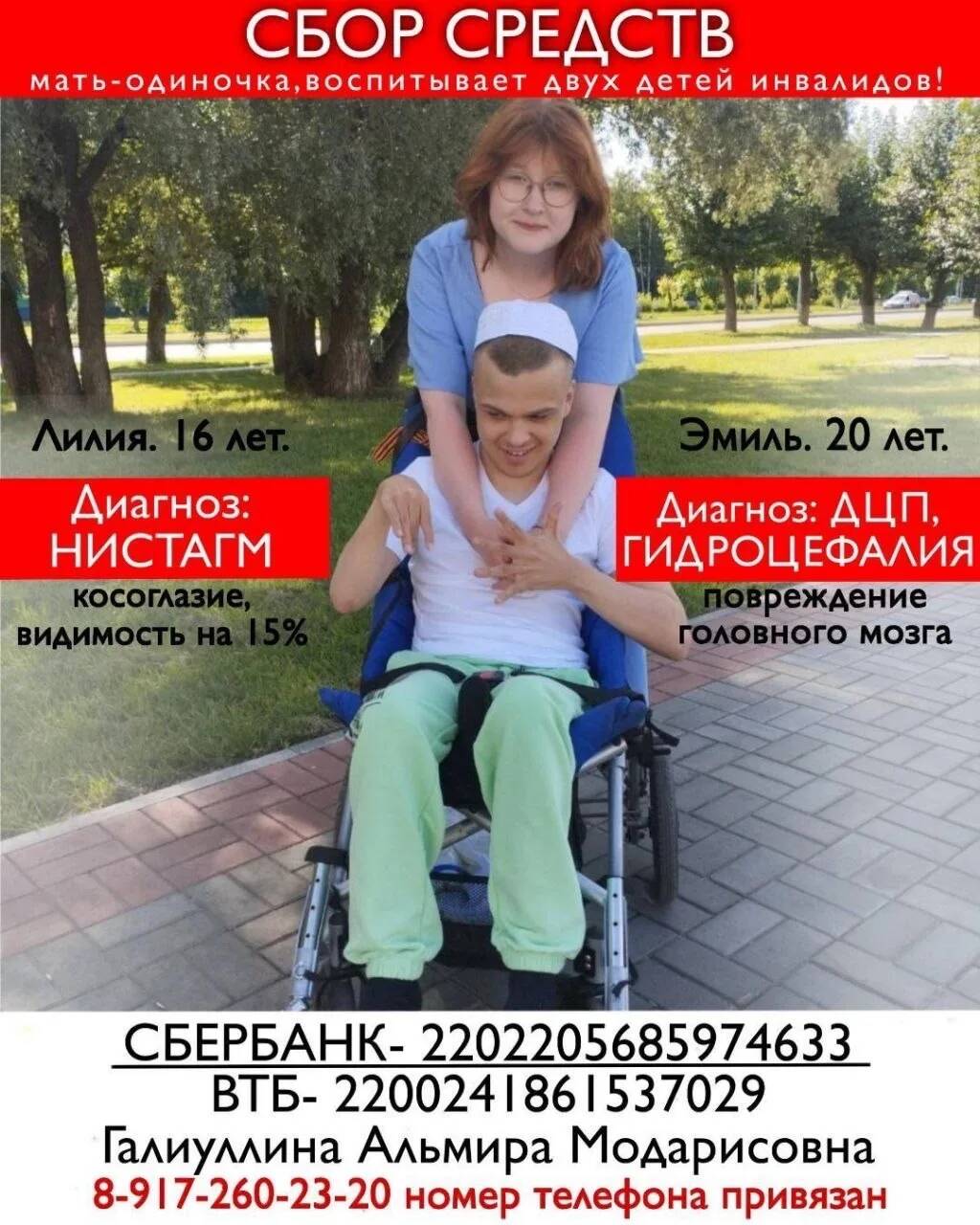 Вакыт үтә тора. Эмильгә дә быел 21 яшь тула инде, – ди Альмира. – 5 айлык вакытында улымның башына аппарат куйганнар иде. Шуның ярдәмендә, тәне буйлап уза торган трубка аша, баланың барлык артык сыеклык чыгып тора. Моннан 4 ел элек, Эмильнең шул трубкалары өзелгән иде. Казанда 4 сәгать буе катлаулы операция ясап, яңаны урнаштырдылар. Эмильнең башына су җыелудан шушы аппарат кына саклый. Ләкин моның үз уңайсызлыгы да бар — улым кече йомышын бик еш башкара. Бала чиста-пөхтә булсын өчен бик күп памперслар кулланырга туры килә. Бер кап памперс безгә бары тик ике көнгә генә җитә. Хөкүмәт 3 айга дип биргән пасперсларны без 1 айда тотып бетерәбез. Калганнарын мәрхәмәтле кешеләр җибәргән җомга хәерләренә үземә сатып алырга туры килә. Шулай ук пеленкалар, юеш салфеткаларны да бик күп сарыф итәбез — дип сөйләде әни кеше.