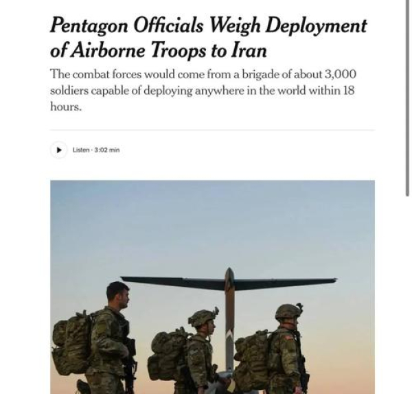Десантники из 82-й воздушно-десантной дивизии рассматриваются в качестве передового отряда для действий в Иране, сообщает New York Times.
