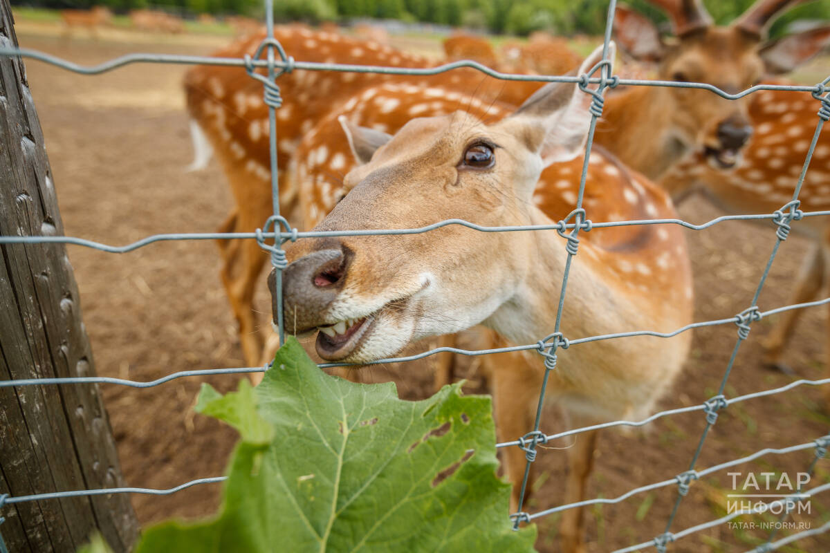 В деревне Степановка Рыбно-Слободского района на «Дикой ферме» живут краснокнижные пятнистые олени. Для них создали приближенные к естественной среде обитания условия. Животные пасутся в экопарке на территории 400 га, поэтому увидеть всех сразу – редкая удача. Но животных много – кроме 180 оленей на ферме живут более 80 алтайских маралов и примерно столько же диких кроликов.