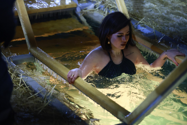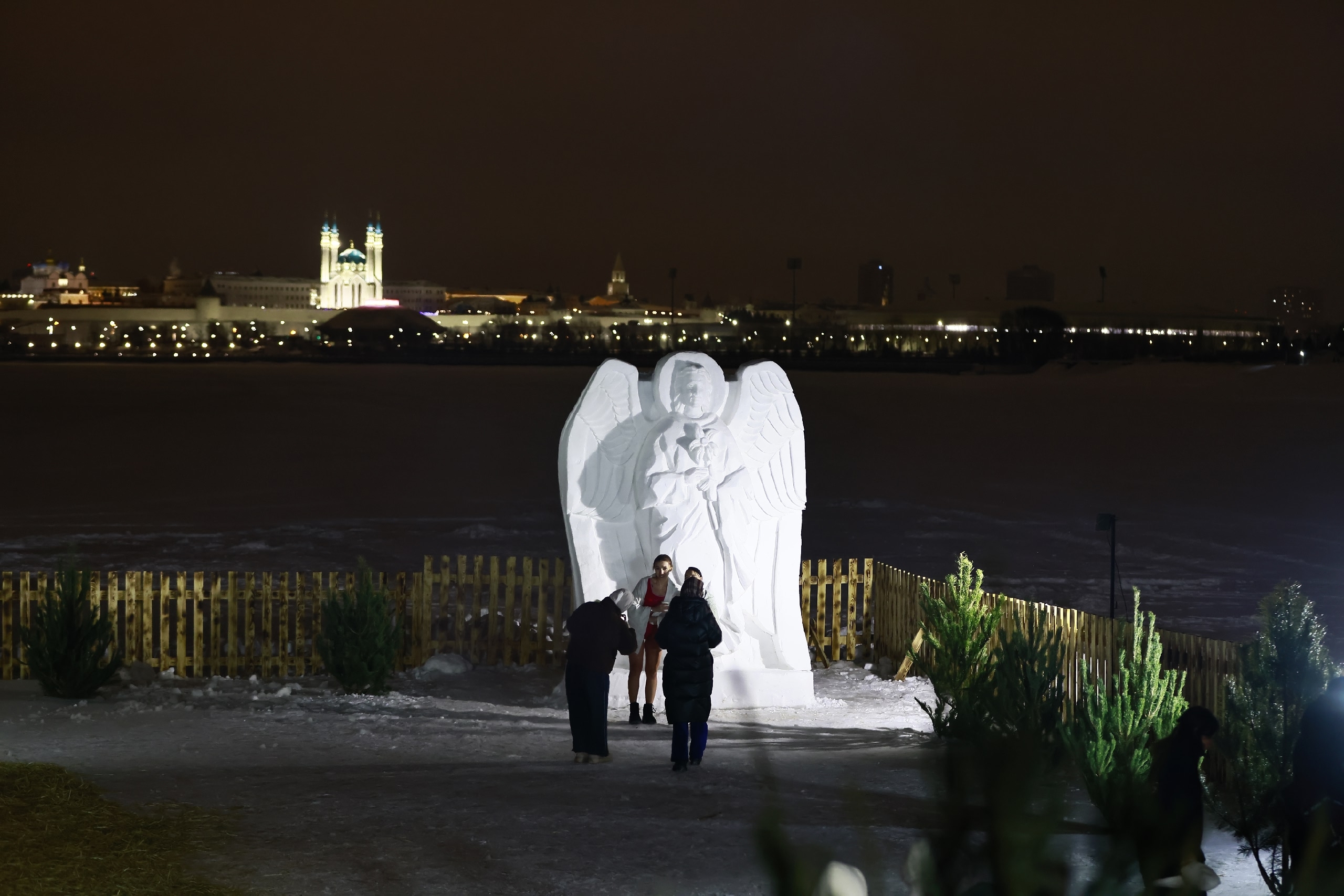Холода не помешали горожанам окунуться в кремлевские купели в праздничный день.