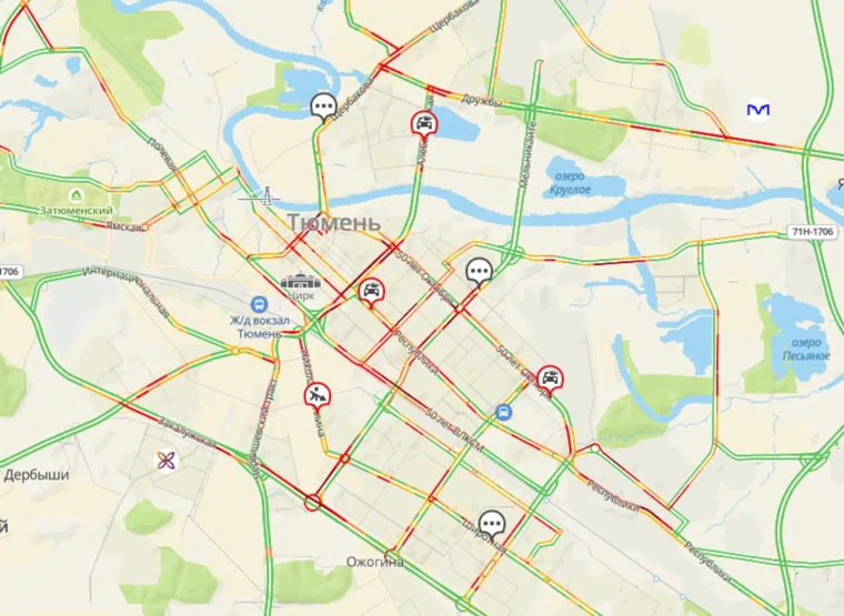 По данным карт, водители стоят также на Червишевском тракте, 50 лет Октября, Запольной, Челюскинцев, Холодильной, Герцена, Ленина, Максима Горького, Щербакова, Западносибирской. На сервисе «Яндекс Карты» уточняется, что ситуация улучшится к 20:00.