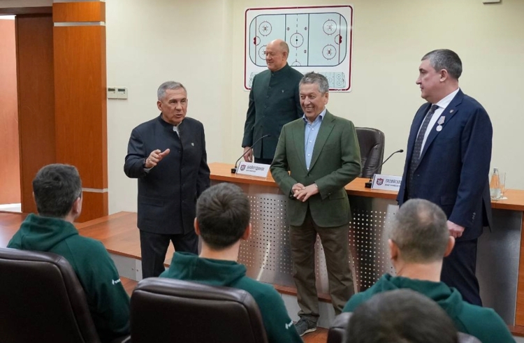 Раис РТ Рустам Минниханов провел встречу с тренерским составом и игроками «Ак Барса» перед стартом плей-офф Кубка Гагарина. В ней также приняли участие президент клуба Наиль Маганов и бывший главный тренер казанцев Зинэтула Билялетдинов.