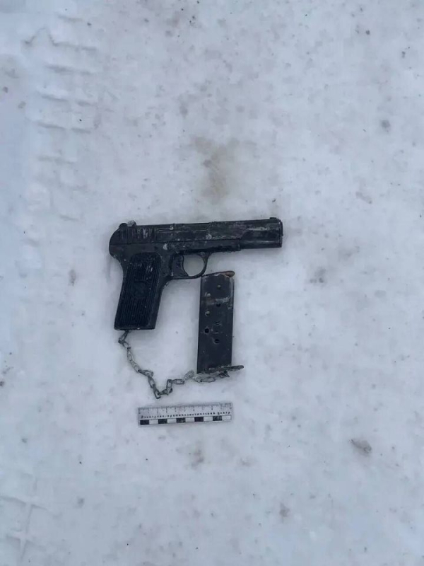 Пистолет был спрятан в снежном покрове неподалёку от дома. Внутри жилого помещения, помимо патронов, также находились ножи и предмет, внешне напоминающий гранату. По результатам экспертизы установлено, что изъятый образец относится к модели ТТ, а боеприпасы признаны пригодными для производства выстрелов.