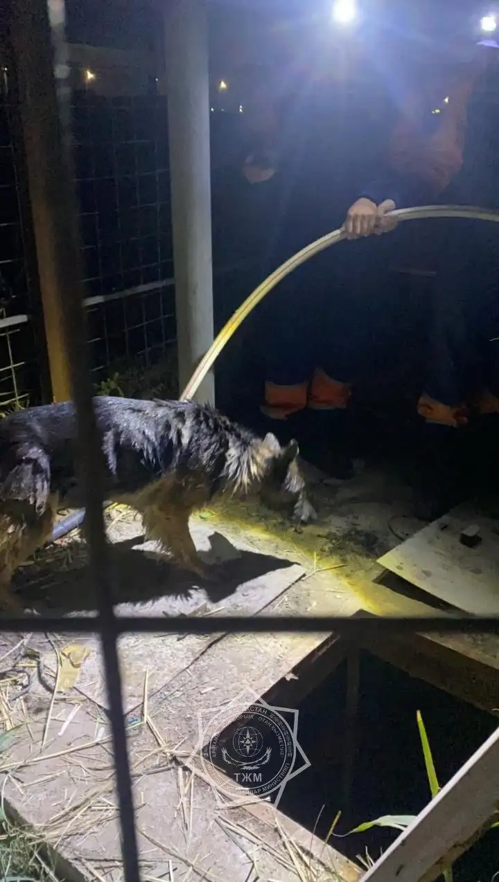 Прибыв на место вызова, спасатели обнаружили собаку, которая упала в колодец возле одного из домов, расположенных по улице Сариева в микрорайоне Жулдыз-1.