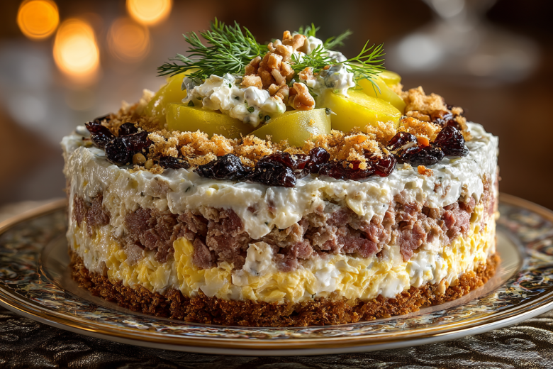 Салат «Мужское наслаждение» — неотразимое блюда для любого застолья. В нём собрано все самое лучшее! Идеальное сочетание мяса, маринованных огурцов и пикантного верхнего слоя из сыра с чесноком.